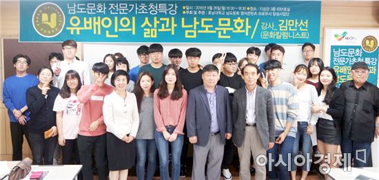 [아시아경제 노해섭 기자]호남대학교 남도문화영어콘텐츠프로듀서양성사업단(단장 정행)은 9월 26일 오후 4시 30분 지성관 3층 강의실에서 남도문화 전문가 김만선 문화칼럼니스트 초청 특강을 실시했다.