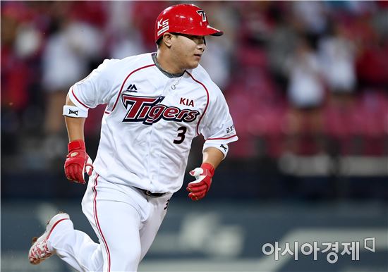 [광주=아시아경제 김현민 기자] 프로야구 LG 트윈스와 KIA 타이거즈의 2016 KBO리그 경기가 27일 광주구장에서 열렸다. 1회말 1사에서 KIA 김선빈이 좌전 안타를 치고 1루 베이스를 향해 달리고 있다.