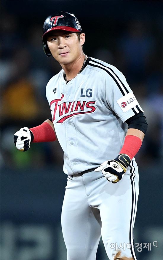 [광주=아시아경제 김현민 기자] 프로야구 LG 트윈스와 KIA 타이거즈의 2016 KBO리그 경기가 27일 광주구장에서 열렸다. 2회초 1사 2루에서 LG 오지환이 선취 1타점 2루타를 치고 주먹을 불끈 쥐며 기뻐하고 있다.