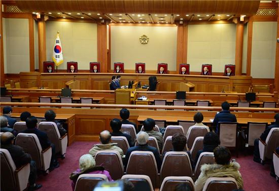 헌법재판소는 29일 오후 2시 서울 재동 대심판정에서 '사법시험존치 대학생연합' 대표 정윤범씨가 "사법시험 폐지를 규정한 변호사시험법은 위헌"이라며 낸 헌법소원심판 사건에 대해 헌법에 위배되지 않는다고 결정했다.