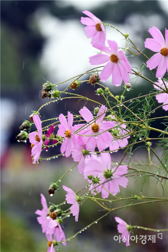 [아시아경제 노해섭 기자]가을비가 촉촉이 내리는 가운데 30일 ‘제16회 곡성심청축제’가 열리고 있는 섬진강 기차마을에 핀 가을의 전령사인 코스모스가 가을비를 머금고 아름다운 자태를 뽐내고 있다. 곡성 심청축제는 9월 30일부터 10월 3일까지 가을빛이 절정인 곡성 섬진강 기차마을에서 펼쳐진다.