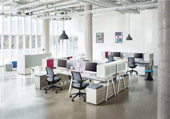 ‘인에이블’ 시리즈는 뛰어난 모듈화와 호환성을 통해 업무와 조직 변화에 따라 자유롭고 유기적인 공간 설계가 가능한 오피스 시스템이다. 책상에 내장된 배선기능으로 전자기기 사용이 편리하고, 책상 이동 및 배치가 용이한 것도 장점이다.