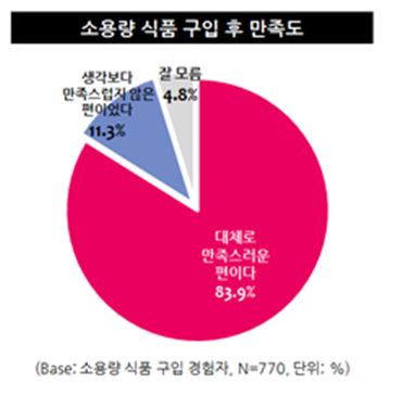 소용량 식품 구입경험자의 83.9%가 "만족스러운 편"