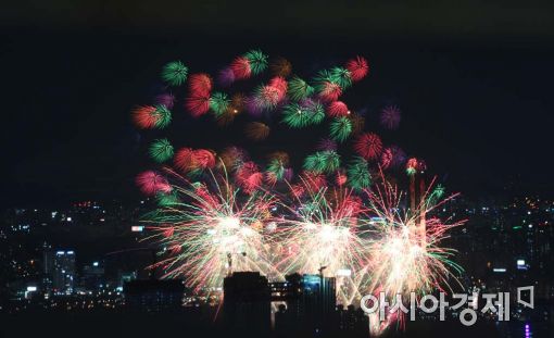 [아시아경제 백소아 기자] 2016 서울세계불꽃축제가 열린 8일 서울 중구 남산에서 바라본 서울 하늘에 화려한 불꽃들이 터지고 있다.