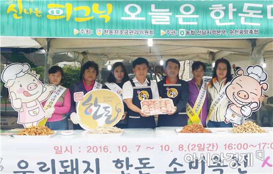 [아시아경제 노해섭 기자]농협전남지역본부는(본부장 강남경)은 지난 7일 제15회 광양숯불구이축제장에서 우리 돼지 한돈 소비촉진행사를 실시했다.