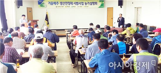 [아시아경제 노해섭 기자]농협전남지역본부는 겨울배추 생산안정제 시범사업 농가설명회를 최근 진도 선진농협에서 관내 생산농업인 150여명을 대상으로 개최해 큰 호응을 얻었다고 10일 밝혔다.