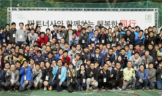 [아시아경제 조호윤 기자]세븐일레븐은 14일 오전 경기도 양주 소재 한 유원지에서 주요 140여개 협력업체 임직원 270여명을 초청해 '행복한 동행'을 주제로 한마음 단합대회를 진행했다.