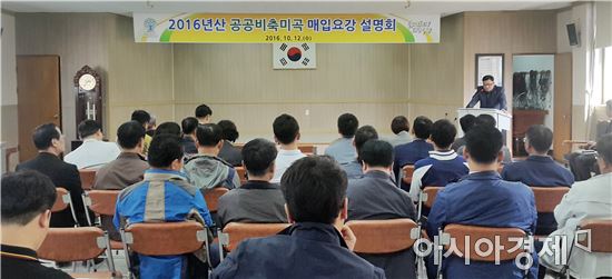 [아시아경제 노해섭 기자]곡성군(군수 유근기)은 지난 12일 농산물품질관리원과 합동으로 농협·정부양곡보관창고 관계자, 읍·면 담당자 등 43명이 참석한 가운데 '2016년산 공공비축미곡 매입요강 설명회’를 개최했다고 밝혔다.