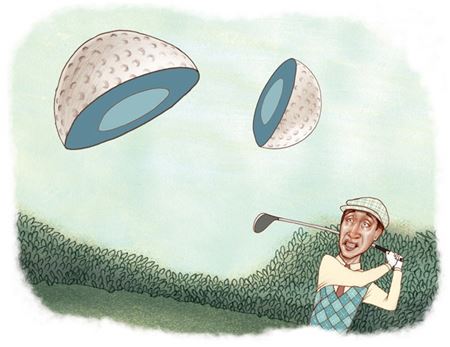 최근 미국의 행크 브룬이라는 한 아마추어골퍼가 골프닷컴에 질문한 내용이다. 자신을 "헤라클레스(Hercules)라고 불러 달라"는 농담으로 경험담을 털어놨다. 티 샷을 했는데 공이 쪼개졌다. 하나는 왼쪽으로 30야드, 다른 조각은 오른쪽으로 30야드가 날아갔다. "새 공이 박살나다니…." "큰 조각을 선택해야 하나", "조금 더 먼 것으로 플레이할까"를 고민하다 "멀리건을 하겠다"고 한 뒤 다시 티 샷을 했다.