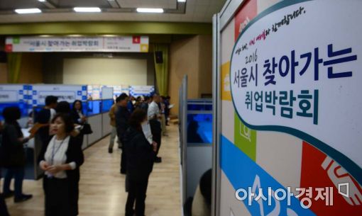 [아시아경제 백소아 기자] 18일 서울 서초구 서초구청에서 열린 2016 서울시 찾아가는 취업박람회에서 구직자들이 채용상담을 받기 위해 기다리고 있다.