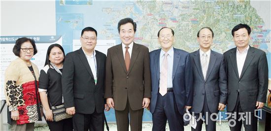 [아시아경제 노해섭 ]이낙연 전남지사가 18일 오후 전남도를 방문한 프란시스 빈쎈 라스 필리핀 대체의학청장(왼쪽 세 번째)과 면담을 가진 뒤 기념촬영을 하고 있다.