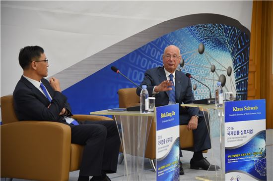 대담자로 나선 백강진 캄보디아 특별재판소 재판관은 4차 산업혁명으로 일자리가 없어지고, 오히려 소득 불평등 격차가 심화되는 것이 아니냐고 우려했다. 슈바프 회장은 "1차적으로 일자리가 파괴되고, 2차적으로 새 일자리들이 생겨날 것"이라고 예견했다.