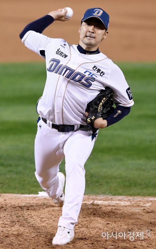 [아시아경제 김현민 기자]프로야구 LG와 NC의 2016 KBO 포스트시즌 플레이오프 1차전이 21일 마산구장에서 열렸다. 9회초 NC 임창민이 역투하고 있다.