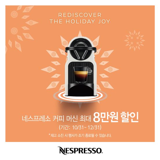 [아시아경제 이주현 기자]네스프레소가 오는 31일부터 12월31일까지 다양한 커피 머신 할인 프로모션을 진행한다고 27일 밝혔다.