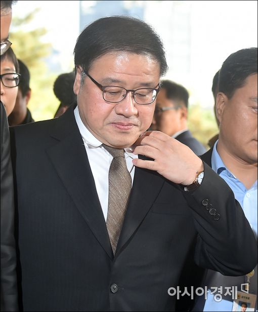 [아시아경제 윤동주 기자] 안종범 전 청와대 정책조정수석비서관이 피의자 신분으로 2일 서울 서초구 중앙지검으로 출석하고 있다. 안 전 수석은 '박근혜 대통령의 비선실세'로 지목된 최순실씨를 위해 대기업으로부터 미르·K스포츠 재단을 위한 출연금을 강제 모금했다는 의혹을 받고 있다.