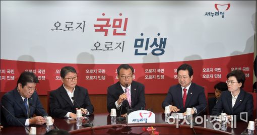 [아시아경제 윤동주 기자] 이정현 새누리당 대표가 7일 서울 여의도 당사에서 열린 최고위원회의에 참석, 모두 발언을 하고 있다.