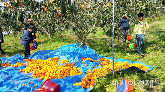 [아시아경제 노해섭 기자]영암읍사무소 직원들은 최근 군청 기획감사실, 여성가족과직원들과 함께 본격적인 영농철을 맞아 일손이 부족한 감 재배농가를 방문해 일손돕기에 구슬땀을 흘렸다.