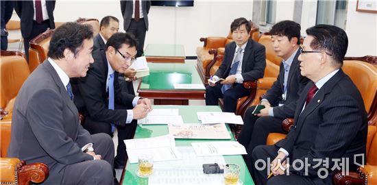 이낙연 전남지사가 10일 오후 국회에서 더불어민주당 이개호ㆍ김태년 국회의원과 면담을 갖고 전남 현안사업이 예결소위 심의 과정에서 최대한 반영되도록 지원을 요청했다.