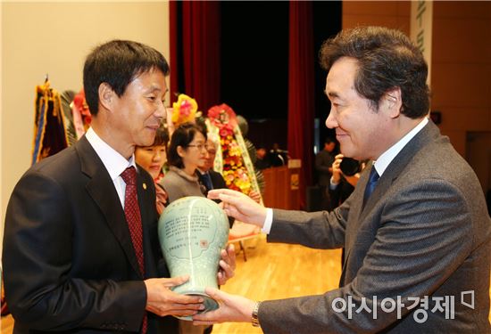 [아시아경제 노해섭 기자]이낙연 전남지사가 11일 오전 도청 김대중강당에서 열린 2016전라남도 농업인의 날 기념식에서 농업인대상을 시상하고 있다.