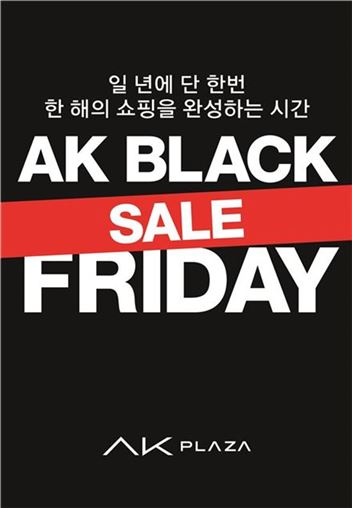 [아시아경제 조호윤 기자]AK플라자는 오는 17일부터 다음달 4일까지 구로본점·수원AK타운점·분당점·평택점·원주점 등 전 점에서 '블랙프라이데이 세일'을 진행한다.