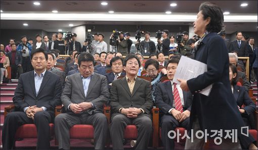 [아시아경제 윤동주 기자] 새누리당 비박계 의원들 중심으로 13일 국회에서 열린 '비상시국회의'에 참석한 오세훈 전 서울시장, 강석호 전 최고위원, 나경원 의원, 유승민 의원 등 참석자들이 심각한 표정을 짓고 있다.