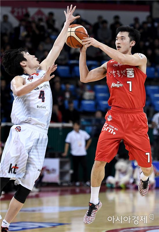 [아시아경제 김현민 기자]프로농구 서울 SK와 부산 kt의 2016-2017 정규리그 경기가 13일 서울 잠실학생체육관에서 열렸다. SK 변기훈이 상대 수비를 뚫고 공격하고 있다.