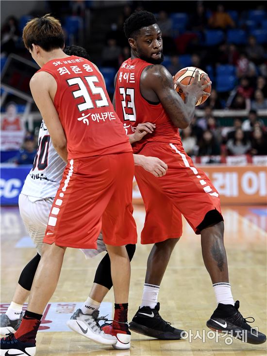 [아시아경제 김현민 기자]프로농구 서울 SK와 부산 kt의 2016-2017 정규리그 경기가 13일 서울 잠실학생체육관에서 열렸다. SK 화이트가이 상대 수비를 뚫고 공격하고 있다.