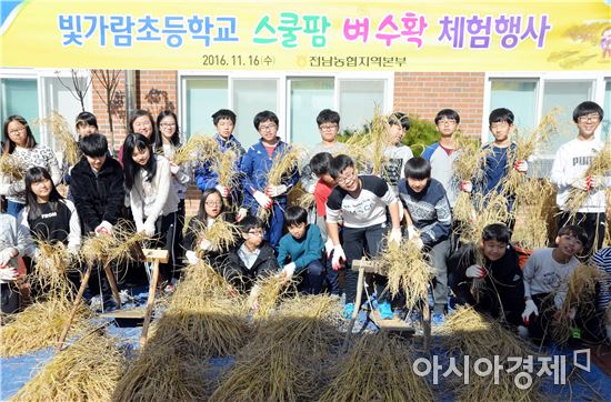 [아시아경제 노해섭 기자]농협 전남지역본부(본부장 강남경)는 16일 나주 빛가람초등학교(교장 소순희) 농업체험장에서 교직원과 학생 200여명이 참석한 가운데 벼 수확체험 등 다양한 행사를 가졌다
