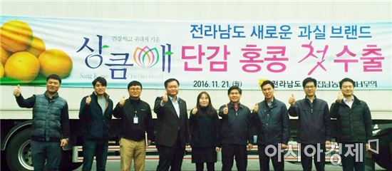 [아시아경제 노해섭 기자]농협전남지역본부(본부장 강남경)는 21일 순천시거점산지유통센터에서 단감수출연합으로 육성하고 있는 구례농협(조합장 조재원)과 순천연합조합공동사업법인(대표이사 장용식) 관계자들이 참석한 가운데 우리지역 단감의 홍콩 첫 수출 상차를 실시했다.