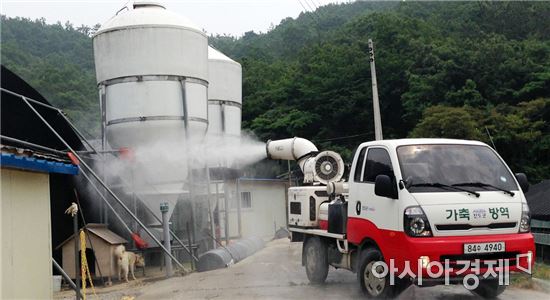 또 진도군 자체 보유 방역 차량을 동원해 축산 농가에 대해 집중 소독을 펼치고 있다.