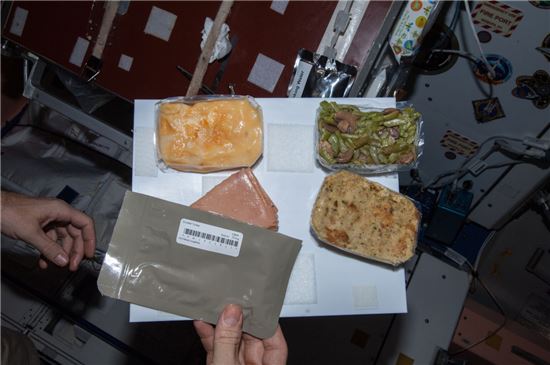 중력이 없는 ISS에서 음식을 쉽게 만들고 먹기 위해서는 특별한 과정을 거쳐야 한다. 냉동이 필요 없고 우주비행사들의 건강을 지켜주는 필수 영양소가 중요하다. 냉동 건조한 식품은 안전성을 보장하고 무게를 줄일 수 있다. ISS에 보내지는 음식은 사전 조리된 제품들이 대부분이다. 물을 추가하거나 열만 가하면 간단히 먹을 수 있도록 만들었다. 다만 과일과 채소 등은 신선한 상태로 ISS에 보낸다.