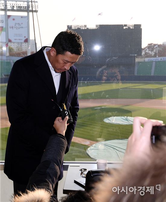 [아시아경제 김현민 기자]프로야구 LG의 '적토마' 이병규가 25일 잠실야구장에서 은퇴 기자회견을 하고 있다.