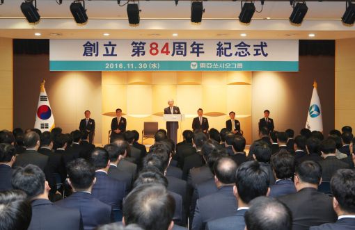강신호 회장은 기념사에서 "기업의 평균 수명이 30년이 채 되지 않는다고 하는데, 우리는 벌써 80년이 넘어 100년을 향해 가고 있다"며 "그 동안 크고 작은 어려움이 많았지만 시대의 흐름에 맞춰 지혜롭게 잘 극복해 왔기 때문에 오늘에 이를 수 있었고, 이 자리를 빌려 회사를 위한 일념으로 한결같이 노력해준 여러분께 감사를 드린다"고 말했다.