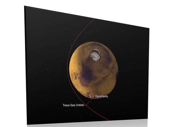 지난 10월 화성에 도착한 유럽우주기구(ESA)의 궤도 탐사선 TGO(Trace Gas Orbiter)와 화성 지표면에서 탐사활동을 벌이고 있는 미국 항공우주국(NASA)의 오퍼튜니티가 중계 교신하는 데 성공했다.