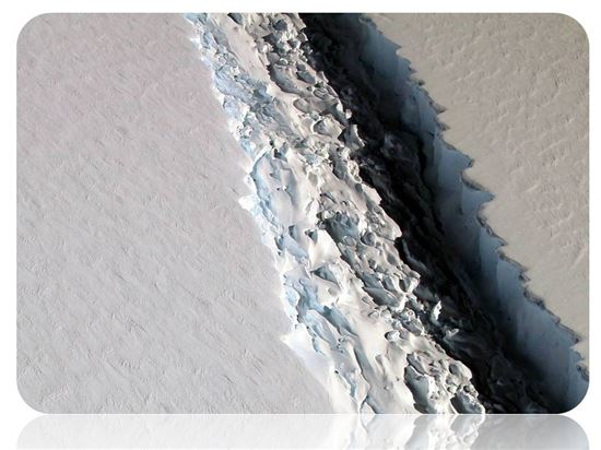 남극의 거대한 빙붕이 갈라지고 부셔지는 모습이 항공촬영으로 확인됐다. 지난 11월10일 남극 라르센 C 빙붕의 모습이 미국 항공우주국(NASA)의 항공기에 포착됐다. 이번 항공촬영은 극지의 얼음을 조사하는 '아이스브리지(Icebridge)' 프로그램을 수행하는 과정에서 나타났다.