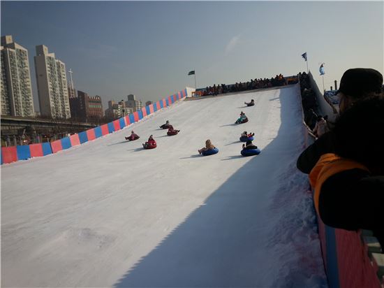 [아시아경제 이현주 기자] 서울시는 뚝섬 한강공원 눈썰매장을 17일부터 내년 2월19일까지 개장한다고 15일 밝혔다. 운영 시간은 주간과 주말 관계 없이 매일 오전9시부터 오후 5시까지 연중 무휴로 운영된다. 이용요금은 만 3세 이상 6000원이다. 단, 소형 슬로프가 개장될 떄까지 만 3세부터 만 5세까지는 무료다.