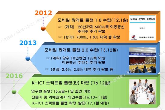 우선 2018년까지 28GHz 대역에서 1GHz폭과 3.5GHz 대역에서 300Mhz폭을 할당할 계획이다. 이어 2018년~2021년까지 28GHz 좌우 인접대역, WRC-19 표준 대역 등에서 2GHz 폭을 추가로 확보하기로 했다.