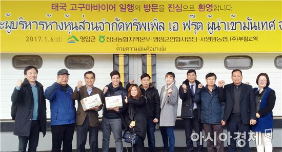 [아시아경제 노해섭 기자]농협전남지역본부(본부장 이흥묵)는 6일 서영암농협 산지유통센터에서 서영암농협(조합장 이재식), 영암군농협연합사업단(단장 지종태), 서영암농협 고구마공선출하회(회장 박현식), 수출업체 부림교역(대표 홍현표)과 함께 태국 고구마 수입 바이어를 초청하여 우수한 우리지역의 고구마를 홍보하는 설명회를 개최했다.