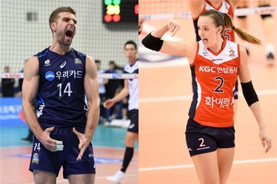 [아시아경제 김흥순 기자] 크리스티안 파다르(우리카드)와 알레나 버그스마(KGC인삼공사)가 프로배구 NH농협 2016~2017 V리그 4라운드 남녀부 최우수선수(MVP)로 뽑혔다.