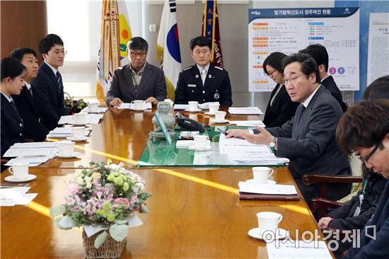 [아시아경제 노해섭 기자]이낙연 전남지사는 설 명절을 앞 둔 25일 오후 도지사실에서 현장근무, 상황근무, 교류근무 직원 등 15명과 간담회를 갖고 격려했다.