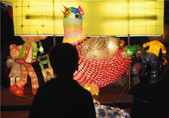 [아시아경제 노미란 기자] 4일(현지시간) 대만 수도 타이베이에서 열린 등불축제에서 한 어린 아이가 닭을 형상화한 등불을 바라보고 있다. (사진출처=EPA연합)