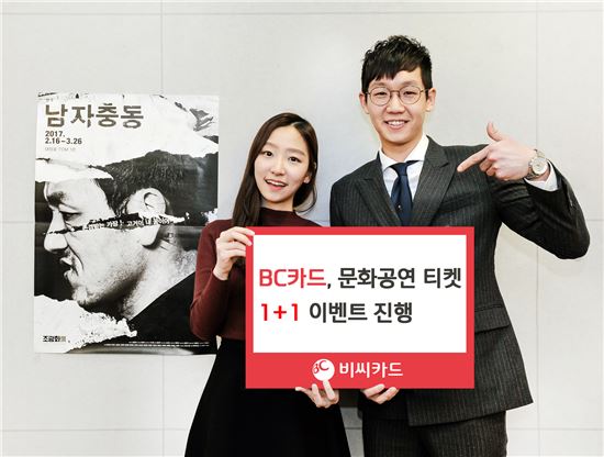 [아시아경제 구채은 기자]BC카드가 연극 '남자충동'의 티켓을 사는 고객들을 위한 1+1 이벤트를 진행한다고 9일 밝혔다.