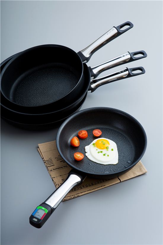 후라이팬 안쪽 바닥부터 손잡이까지 적정 온도를 측정하는 센서가 있고 손잡이에 쿠킹센서를 부착하여 요리의 온도를 설정할 수 있게 하며 과열이 되면 알림음을 내서 태우지 않고 완벽하게 요리할 수 있도록 한다.