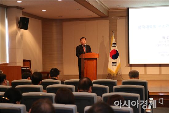 이날 백 위원장은 100여명의 전체 교직원을 대상으로 ‘한국대학의 구조개혁: 이슈와 도전’라는 주제로 특강을 실시했다.