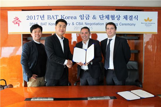 [아시아경제 오주연 기자] 브리티쉬 아메리칸 토바코 코리아(BAT 코리아)이 노동조합과 협력관계를 강화하고 회사의 지속적인 발전을 도모하기 위한 ‘무교섭 임금협상'을 타결했다.