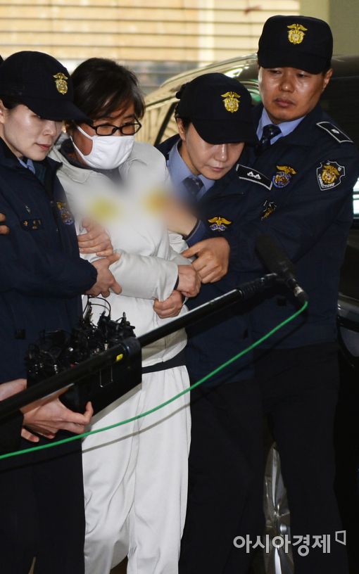 [아시아경제 문호남 수습기자] 100억원 상당의 불법 재산 은닉 혐의를 받고 있는 '비선실세' 최순실(구속기소)씨가 25일 서울 강남구 대치동 특검사무실로 소환되고 있다.