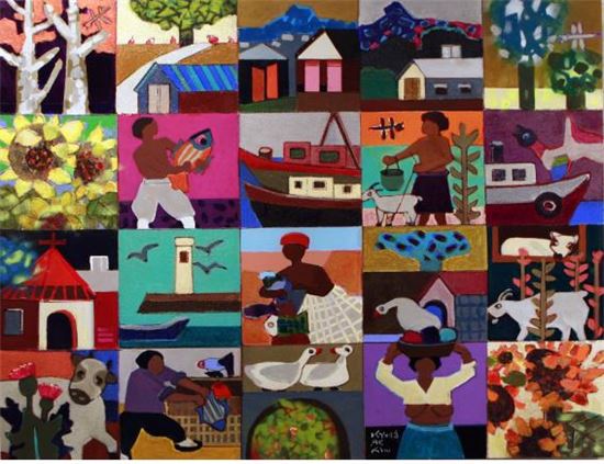 특히 ‘전원교향곡’(116.8x91cm)이라는 작품은 일상생활의 평화로운 모습 20가지를 화려한 색상으로 담아내 갤러리의 시선을 끌고 있다.