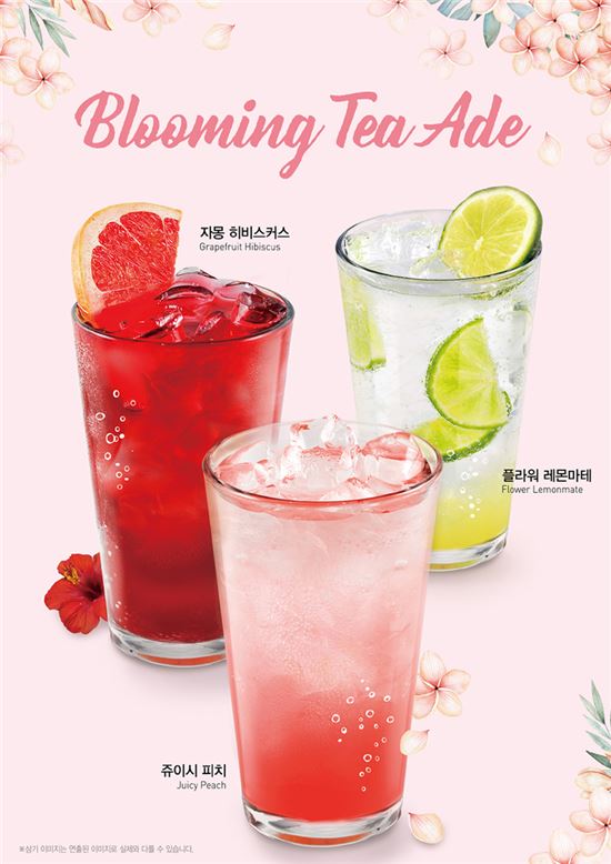 카페베네 블루밍 티 에이드는 플로럴 계열의 티와 시럽, 과일 베이스를 적절하게 블렌딩 한 후 탄산수를 더해, 은은한 플라워와 상큼한 과일향, 톡톡 튀는 스파클링의 시원한 청량감을 동시에 느낄 수 있는 메뉴다. 신메뉴는 ‘자몽 히비스커스’, ‘쥬이시 피치’, ‘플라워 레몬마테’ 총 3종으로 구성됐다.