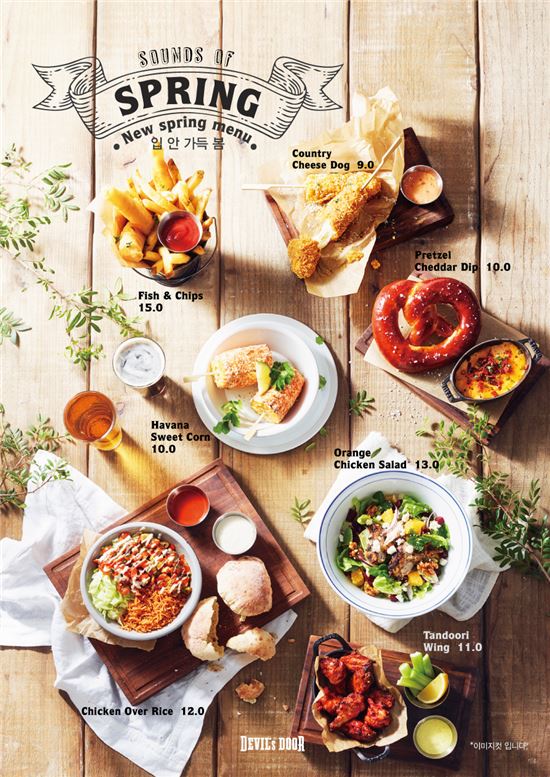 사운즈 오브 스프링 콘셉트로 선보인 데블스도어 신메뉴 7종은 가볍고 산뜻한 맛에 부담 없는 가격으로 구성된 것이 특징이다.