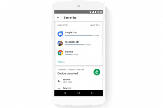 이 앱을 활용하면 자녀가 사용하는 앱을 관리하고 기기를 사용한 시간도 체크할 수 있다. 부모가 '취침시간'을 설정해서 원격으로 기기를 잠글 수 있다.